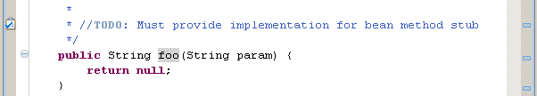 L'assistant génère un fichier source java contenant le squelette du code de l'implémentation de l'EJB. Le nom du fichier généré est constitué du nom de l'EJB et du sufixe Bean qui est automatiquement ajouté.